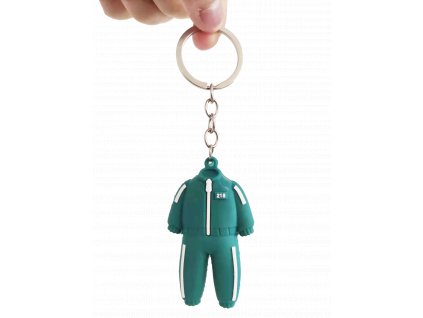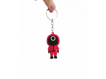 Přívěsek na klíče na motivy populárního seriálu Squid Game je vyroben z kvalitního a odolného plastu. Silikonový dozorce visí na kovovém kroužku ve stříbrné barvě, na kterém si můžete pověsit klíče. Praktické poutko umožňuje nosit klíčenku na ruce, a tak ji mít vždy u sebe.
